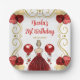 Diese Geburtstagsfeier lädt mit einem eleganten Goldrahmen, einer schönen Prinzessin mit blondem Haar und einem roten Kleid, Blume und einem Ballon ein. Das ist perfekt für eine Geburtstagsfeier.