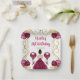 Diese Geburtstagskarte lädt mit einem eleganten Goldrahmen, einer schönen Prinzessin mit braunem Haar und einem bordeauxroten Kleid, Blume und einem Ballon ein. Das ist perfekt für eine Geburtstagsfeier.