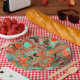 Birthday Party in Orange und Brown Abstrakt Art Pappteller