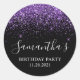 Erstellen Sie Ihre eigene Geburtstagsparty Gunst für Aufkleber oder umhüllen Sie Siegel. Girly Imitats funkelnd königlicher lila Glitzer auf einem individuell anpassbaren schwarzen Hintergrund. Passen Sie die Stile des Schriftartes an, um für ihre besondere Feier Ihr eigenes Gunst-Aufkleber-Design zu kreieren.