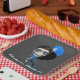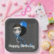 Das lächelnde Gesicht des Menschen mit Haar- und Luftsonnenbrille auf Party-Ballons und Konfetti für eine Geburtstagsparty. Die Farbe des grauen Hintergrunds kann geändert werden. Text ist bearbeitbar.