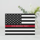 Mit dieser eleganten Einladungskarte laden Sie stilvoll zu der 50-köpfigen Geburtstagsparty Ihres Feuerwehrmanns ein. Dieses Design hat eine dünne rote Linie amerikanische Flagge auf einem schwarzen Hintergrund. Über die rote Linie in weißer Typografie liest es "50. Geburtstagsparty" Die Rückseite der Einladungskarte hat einen schwarzen Hintergrund und eine dünne rote Linie quer durch die Mitte, die den Namen des Feuerwehrmanns unterstreicht. Personalisieren Sie alle Ihre Party-Daten, um Ihre Bedürfnisse Anzug.