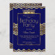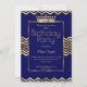 Elegante Geburtstagsparty Navy Blue Gold Crown Zickzack Art Deco. Passen Sie Ihre persönlichen Daten an.