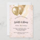 Für eine elegante 18. Geburtstagsfeier (oder jedes Alter). Ein weibliches Licht, rosafarbener Hintergrund. Dekoriert mit Imitaten vergoldeten Glitzer, Glitzern und Ballons. Personalisieren und fügen Sie Namen, Alter und Party Details hinzu. Der Name wird mit einem handgeschriebenen Stilskript geschrieben