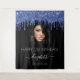 Eine Tapisserie für eine mädchenhafte und glamouröse 21. Geburtstagsfeier (oder jedes Alter). Ein schwarzer Hintergrund mit marineblauen Imitaten Glitzer Tropfen. Personalisieren und fügen Sie Ihr eigenes hochwertiges Foto des Geburtstagsmädchens hinzu. Der Text: Der Name wird mit einem modernen handgeschriebenen Stilskript mit Swases geschrieben. Um die Swashes behalten, löschen Sie nur den Beispielnamen, verlass die Leerzeichen oder Emoji's vor und nach dem Namen. Tempate für einen Namen, Alter 21 und ein Datum. Kann als Wanddekor für das Party oder als Foto-Standfläche verwendet werden.
