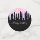 Girly und feminine Confetti für Ihre 21. (oder jedes Alter) Geburtstagsfeier. Ein schicker schwarzer Hintergrund mit regenbogenfarbenen Imitaten Glitzer Tropfen in lila, rosa und Rose Gold. Personalisieren und fügen Sie ein Datum und Name/Alter 21. Lavendel gefärbte Buchstaben. Einige konfetti-Chips mit Namen und Datum, andere mit dem Text: Happy Birthday geschrieben mit einem trendy handhabeten Skript mit Swashes. Fügen Sie Ihr eigenes Foto auf zwei der Chips.