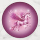 Der kleine Konfetti ist dunkelrot, und auf dem mittelgroßen Konfetti ist ein sanfter rosa Farbverlauf mit magischen Lichtern. Das Bild auf dem großen Konfetti zeigt ein rosa geflügtes Pferd (Pegasus) in Flug mit magischen Lichtern überall herum. Die atemberaubende mythische Kreatur hat auch einige subtile Rot- und lila Farbtöne mit einem schönen rosa, roten und lila Radialgradientenhintergrund. Ideal, um an einer Pegasus-Veranstaltung teilzunehmen!
