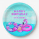 Birthday Pool Party Pink Flamingo Pappteller