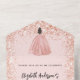 Rose Gold, rot gefärbter Hintergrund, mit einem Mädchen in Kleidung dekoriert, und Imitate Glitzer Glitzern im Inneren. Personalisieren und fügen Sie ein Foto, Namen, Party, UAWG, Rücksendeadresse und Namen.