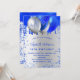 Ein Imitat silber aussehender Hintergrund. Mit königsblauen Imitaten dekoriert, malen Tropfen tropfende Aussehen, Glitzern und Ballons. Personalisieren und fügen Sie einen Namen und Party-Details hinzu. Der Name wird mit einem handgeschriebenen Stilskript geschrieben.