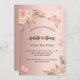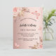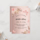 Eine Rose mit goldenem Farbverlauf. Die Einrichtung besteht aus Rose-Gold und rosa Blumen, Rose, Pampas-Gras und Schmetterlingen. Personalisieren und fügen Sie einen Namen und Party-Details hinzu.