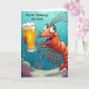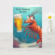 Ein Cartoon-Garnelen hält ein schattiges Bierglas, umgeben von einer Unterwasserszene, die mit Korallen und Blasen zum Geburtstag von Erwachsenen gefüllt ist. Alle Texte können geändert werden.