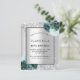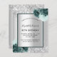 Imitate silber aussehender Hintergrund mit grünen Blume und Imitaten silberne Glitzer, Glitzern. Personalisieren Sie Ihren Namen und Ihre Party-Daten und fügen Sie diese hinzu. Schwarze Buchstaben.