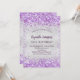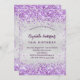 Für eine elegante 18. Geburtstagsfeier (oder jedes Alter). Ein Imitat silber aussehender Hintergrund. Dekoriert mit lila, violettem Imitat Glitzer, Glitzern. Personalisieren und fügen Sie einen Namen und Party-Details hinzu. Der Name wird mit einem handgeschriebenen Stilskript geschrieben