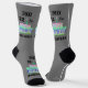 Geburtstagskuchen mit Alter, Name, Jahr und Geburtstagswoche auf ihnen geschrieben. Wählen Sie Ihre Hintergrundfarben an der Eingabeaufforderung. Entworfen von HAMbyWhiteGlove für alle Ihre maßgeschneiderten, personalisierten und besonderen Geschenke! Graue Socken mit grünem Text.