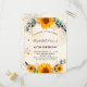 Für eine 40. Geburtstagsfeier (oder jedes Alter). Ein goldfarbener Hintergrund mit Sonnenblumen in Aquarelltönen, Eukalyptusgrün und goldenen Blätter. Imitate vergoldeten Glitzer Staub. Personalisieren und fügen Sie Ihre Namen und Hochzeitsdetails. Zurück: goldweißer Hintergrund, Staub aus Glitzer. Design der Postkarte. Tipp: Wenn Sie es nicht so gewollt haben, dass es wie eine Postkarte aussieht, klicken Sie auf Anpassen, gehen Sie auf die Rückseite und entfernen Sie den Trenner und posten Sie die Briefmarke.