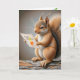 Ein Eichhörnchen ist auf einem Baum-Ast gekrönt und liest eine Geburtstagskarte