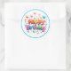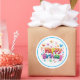 Round sticker is shown with a Happy Birthday confetti print.
