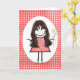 Birthday Strichmännchen Girl on Red Gingham Karte
