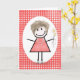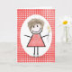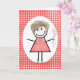 Birthday Strichmännchen Girl on Red Gingham Karte