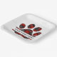 Karierter Pfotendruck mit rotem und schwarzem Tartan mit Happy Birthday Text auf verblasstem, weiß gestrichenem Holz. Text ist bearbeitbar.