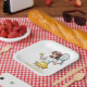 Eine lustige, Tennistheater-Geburtstagsgeschichten mit einem engagierten jungen Spieler, der bereit ist, dem Ball mit Zuversicht zu dienen. Sie ist in einem lässigen weißen Oberteil gekleidet, hellgelber Tennisrock und einem passenden Headband und Armbändern. Das Party-Ambiente wird von fröhlichen Farben und lebendiger Energie geprägt und eignet sich ideal für Einladungen, Dekorationen oder Themen rund um Sport, Spaß und Feiern.