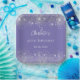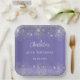 Ein stilvoller violetter Hintergrund mit eleganten Imitate silberner Glitzer, Glitzern. Der Text: Der Name ist weiß geschrieben mit einem modernen handgeschriebenen Stil Skript. Personalisieren und fügen Sie einen Namen, Alter und ein Datum ein.