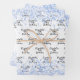 Elegantes, klassisches, glamouröses und feminines Party-Packpapier. Weiße, mit hellblauen Imitaten verzierte Glitzer, Glitzern. Personalisieren und fügen Sie einen Namen und Alter. Ein Blatt ohne Text.