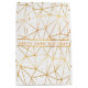 In modern falsch gold geometrical pattern with some golden dots. Elegant timeless giftbag for a 60th birthday with a white backdrop. White and golden ribbon and template for your text or a name. Golden letters.
