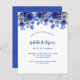 Weiß, mit blauen und weißen Blume geschmückt. Personalisieren und fügen Sie Ihren Namen und Ihre Daten hinzu. Zurück: blauer Hintergrund. 1 Blatt = 1 Einladung mit Druckkante bis Kante.