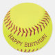 Nah-up eines gelben Weichballs mit roter Naht. Text kann geändert werden.