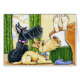 Aus der ursprünglichen Tinte und farbigen Bleistiften Abbildung "Up yet?". Ein schwarzer Blinker und Jalousien Scottie beobachten in Erwartung der Bewegung von ihrem Besitzer im Bett oben. c) 2014 Andie.