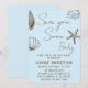 Feiern Sie Ihre kleine Welle auf dem Weg hierher mit dieser eleganten boho-küstennahen Babyshower-Einladung mit handgezeichneten Illustrationen von Muscheln in warmen neutralen Brauntönen. Die moderne Schrift „Sea You Soon Baby“ (Wir sehen uns bald, Baby) kombiniert mit minimalistischer Meereskunst schafft ein zeitloses und stilvolles Design, das perfekt für strandinspirierte Feiern ist.