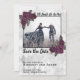 Eine erstaunlich schöne Save the Date Karte mit Till Death Do Us Part Sprichwort, dunkelvioletten Rose und einem weißen und grauen Rautenhintergrund. Skripttypografie. Personalisieren Sie mit Ihrem eigenen Foto. Schauen Sie sich auch unsere Koordinationsartikel an, die auch in schwarz in unserem Shop erhältlich sind.