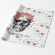 Schädel-Hochzeits-Verpackungspapier - handgemalte Blumen bedeckt auf einem Vintagen Schädel.
