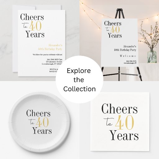 Cheers to 40 Years Minimal Black Gold PartyDesignt von Only The Moon