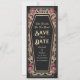 Machen Sie eine kühne Aussage ewiger Liebe. Diese gotische Hochzeit Rettete-The-Date zeigt "Till Death Do Us Part" in einem särgerlichen Rahmen mit Dornen, Rose und Goldakzenten der Rose vor schwarzem Hintergrund. Ideal für eine lustige romantische Feier! Personalisieren Sie Text, Schriftart und Hintergrundfarbe, um Ihre Designeinstellungen Anzug zu erhalten. Matching Items in unserem Shop für ein komplettes Party Thema. Bitte beachten Sie, dass das Rose-Gold auf den Karten KEINE reale Folie ist und in flachen Farben gedruckt wird.