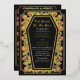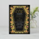 Machen Sie eine kühne Aussage ewiger Liebe. Diese gotische Hochzeitseinladung enthält "Till Death Do Us Part" in einem särgerlichen Rahmen, der mit Dornen, Rose und Goldakzenten auf schwarzem Hintergrund verziert ist. Ideal für eine lustige romantische Feier! Personalisieren Sie Text, Schriftart und Hintergrundfarbe, um Ihre Designeinstellungen Anzug zu erhalten. Matching Items in unserem Shop für ein komplettes Party Thema. Bitte beachten Sie, dass das Gold auf dem BACK der Einladung KEINE echte Folie ist und in flachen Farben gedruckt ist.