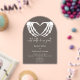 Erleben Sie die Schönheit der ewigen Liebe mit dieser düsteren, gotischen Hochzeitseinladung, die für Liebhaber von Romantik im Schatten entworfen wurde. Die minimalistisch geformte Bogenform mit ihrem schwarzen Hintergrund und dem auffälligen weißen Text strahlt Raffinesse und Rätsel aus. Feine, weiße Skelettknochen bilden ein Herz und krönen das Design. Darunter sind die überwältigend poetischen Worte Bis zum Tod macht uns Teil, die den Ton für eine Liebe abstecken, die über dieses Leben hinausgeht. Ideal für Paare, die es wagen, anders zu sein. Erstellt von der einfachen Farmhouse Press.