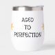 Hier ist ein lustiger Wine Tumbler, perfekt für diese besonderen Geburtstage. Die Meldung wurde mit einem whimsical type Schriftart konzipiert und lautet "AGED TO PERFECTION".