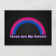 Postkarte mit bisexuellen Regenbogenstreifen in Rosa, lila und Blau; Bi Stolz lgbtqiap+ Flag Design, "This Are My Colors" Template text, by pinkbrickroad