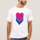 Grundlegender T - Shirt mit Herzdesign in Bisexualität; rosa, lila und blaue Streifen Bi stolde Fahne, Liebe mit Regenbogen Bi Stolz Design