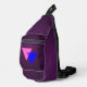 Sling Bag with pink and blue triangles bisexuality symbol, on purple background