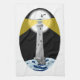 An illustration von Bishop Rock Lighthouse. This lighthouse is on the Isles of Scilly of the Cornish Coast. The lighthouse is drawn at night, with a stormy sea and full moon.