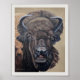 Linda Baysinger Peck's Acrylgemälde eines Büffels oder einer Bisonkuh, zu essen, mit hellbraunem Hintergrund und von weißer Grenze.Bild © Linda Baysinger Peck Alle Rechte vorbehalten