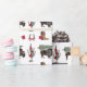 Muster mit Abbildungen eines Büffels mit einer Weihnachtsmannmütze mit einem Weihnachtsbaum auf dem Rücken, einem Kakteen, Hufeisen und einem Cowboy-Stiefel mit festlichem Bogen und Poinsettias.