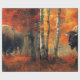 Ein faszinierendes Design mit einem majestätischen Bison, stehend inmitten der lebhaften Farben eines Herbstwaldes. Die reichen, erdigen Töne und die faszinierenden Details der Szene rufen ein Gefühl von Wildnis und Ruhe hervor, das es zu einer schönen Hommage an die saisonale Schönheit der Natur macht.