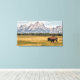 Dieses Foto bietet einsame Wildbisonspaziergänge vor dem Teton-Gebirge in Jackson Hole, Wyoming.