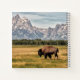 Dieses Foto bietet einsame Wildbisonspaziergänge vor dem Teton-Gebirge in Jackson Hole, Wyoming.