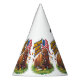 Amerikanisches Buffalo Bison im orangen und schwarzen Text. Ein amerikanischer Bison-Büffel auf Gras weidet mit der amerikanischen Fahne im Hintergrund.